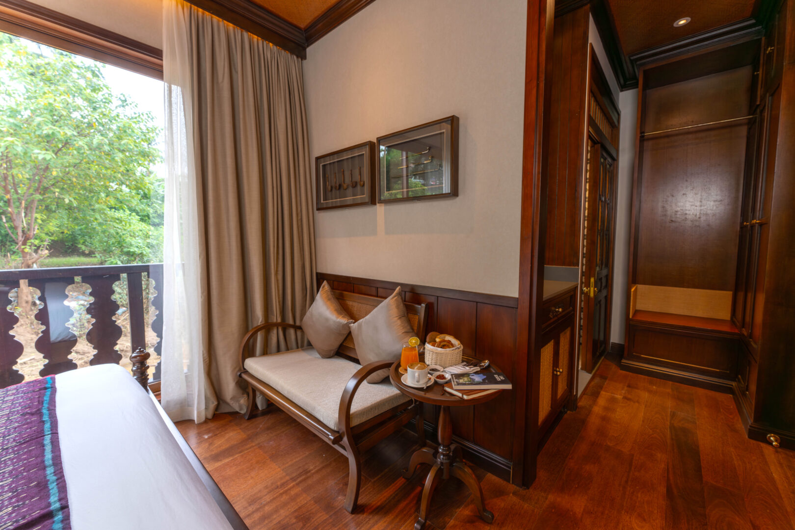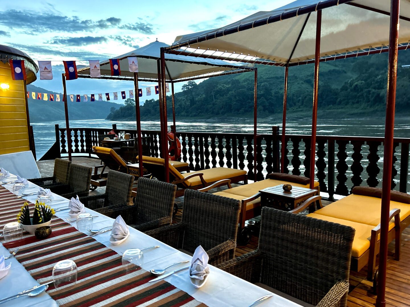 The Anouvong has just 10 cabins on board this intimate ship. On the main deck, there are 4 Deluxe Staterooms and 2 Signature Suites. The deluxe staterooms measure 20sqm and feature a private balcony. The signature suites are 30sqm and set prominently at the bow of the ship. They have their own private balcony and large bathroom with jacuzzi. On the terrace deck, there are 4 Deluxe Executive Staterooms. These rooms are identical to the deluxe staterooms but are located on the upper deck, allowing for more expansive views over the river.