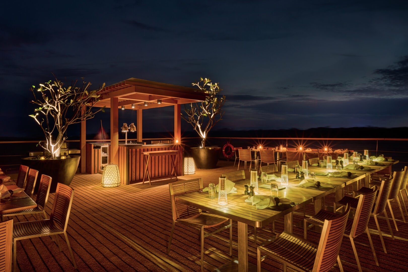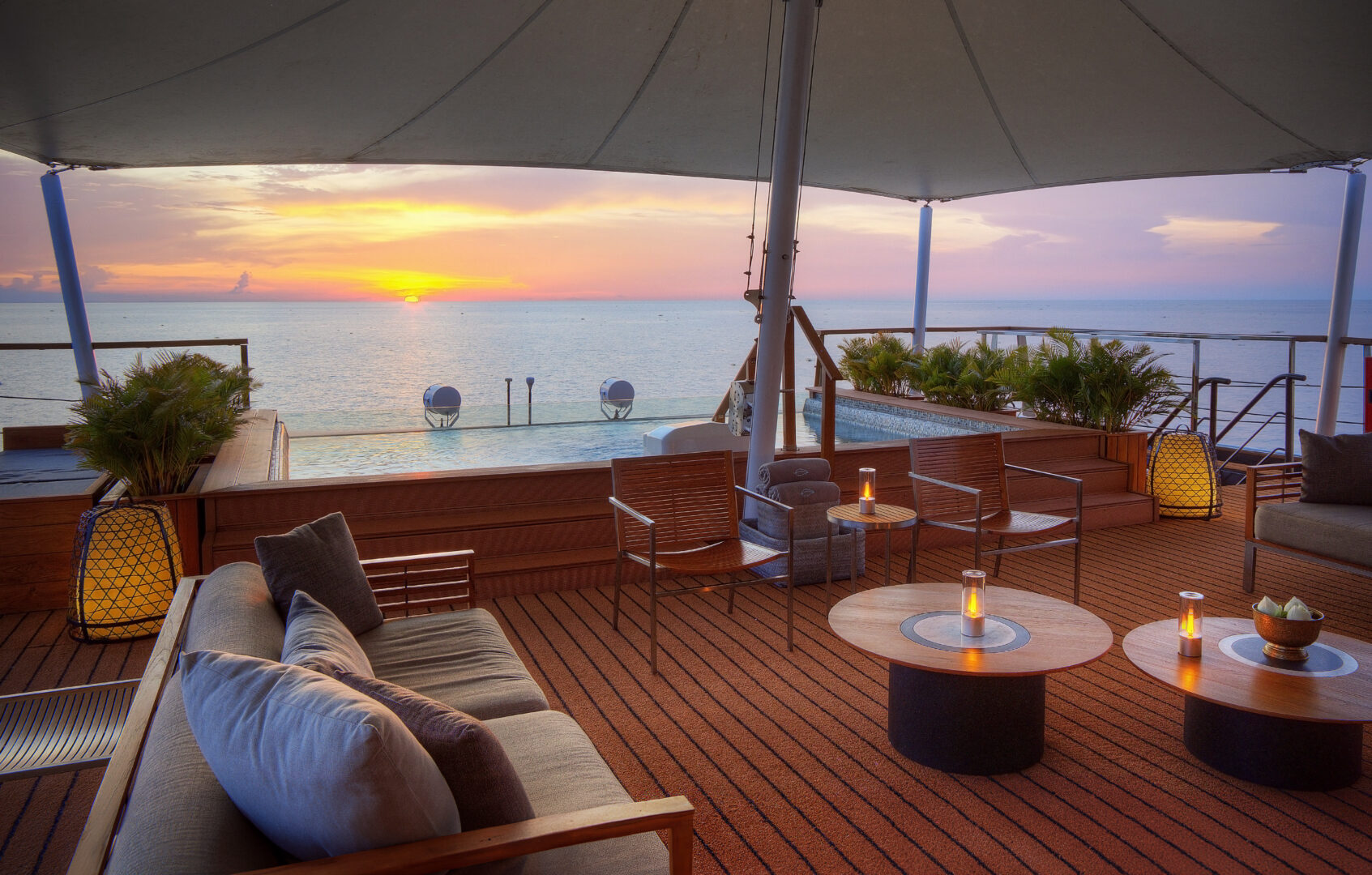 A magnificent presence on the Mekong river, Aqua Mekong showcases modern architecture and interiors by renowned architect Noor Design. The Mekong river cruise ship’s 20 spacious, air-conditioned suites feature full-length windows that offer spectacular panoramas of the ever-changing Mekong scenery. Aqua Mekong also received the coveted Gold Award in the Architecture/New Build category in the 2015 Asia Hotel Design Awards. Ship amenities include a spa, gym, and river-facing plunge pool. As the Aqua Mekong charts a luxurious passage across Cambodia and Vietnam, on-board guests embark on an inspiring journey of local flavors combined with gourmet cuisine. The ship’s bar menu, created by renowned spirit experts and cocktail designers Proof & Co, echoes a similar locally-minded philosophy.