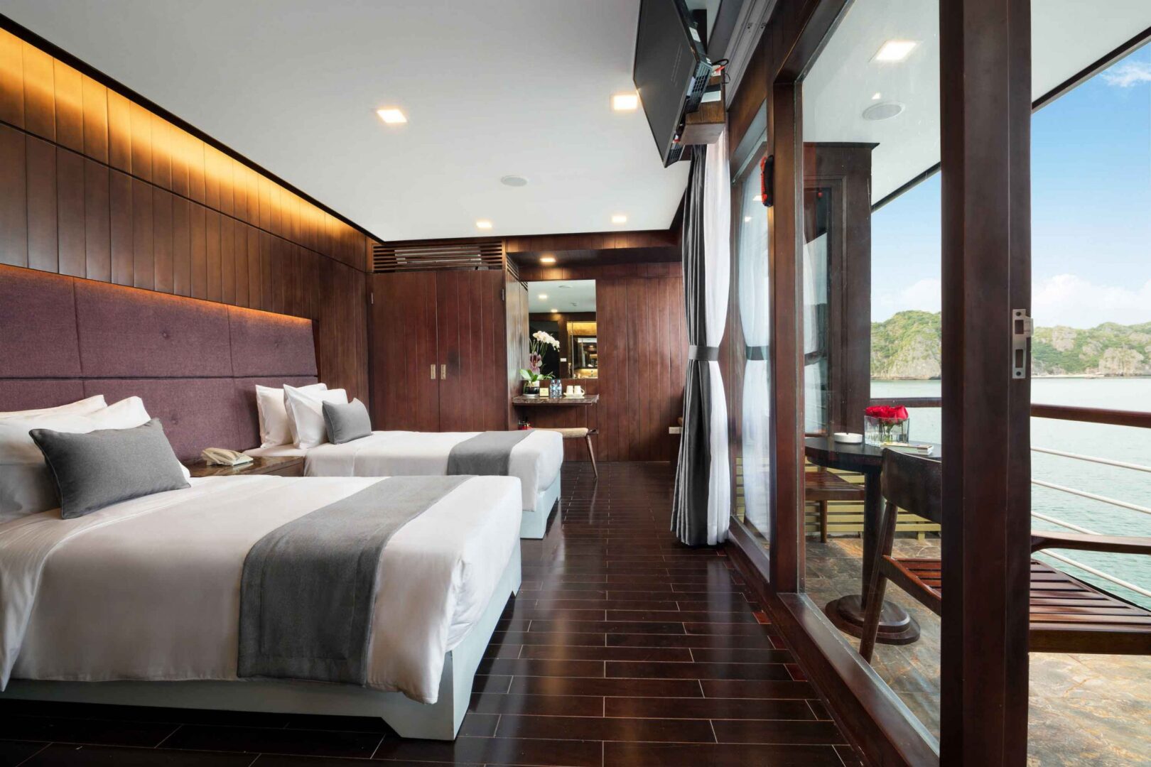 Year Built: 2016, renovated 2019 Ports of Embarkation: Hai Phong City Vessel’s Registry: Vietnam Type of Vessel: Boutique Vessel Length: 54m Beam: 11m Cruising Speed: 5 knots Electricity: 220 volts AC: Central air-conditioning throughout Internet: Complimentary
