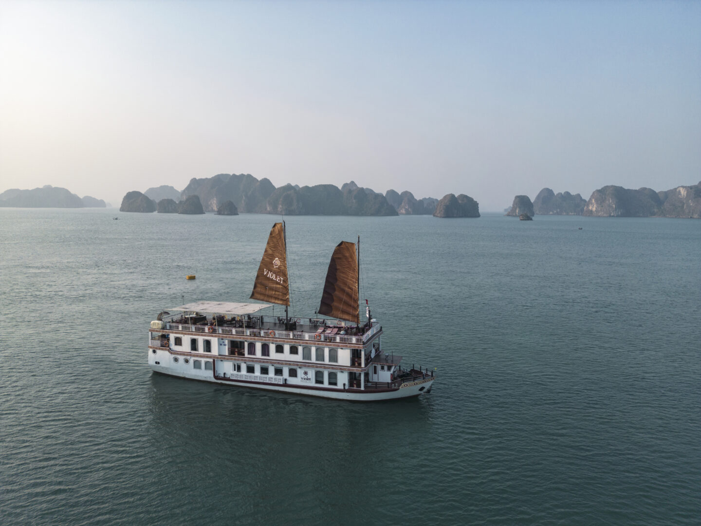 The Heritage Violet offers a luxurious voyage amidst stunning limestone karsts and emerald waters. With just six elegant cabins boasting panoramic views, this ship is the perfect boutique option to discover the natural wonder of the lesser-visited Bai Tu Long Bay. Enjoy delectable cuisine and activities like cave visits and kayaking or choose to relax on the sundeck. No matter what you choose, this will be an unforgettable journey through one of Vietnam's most captivating landscapes.