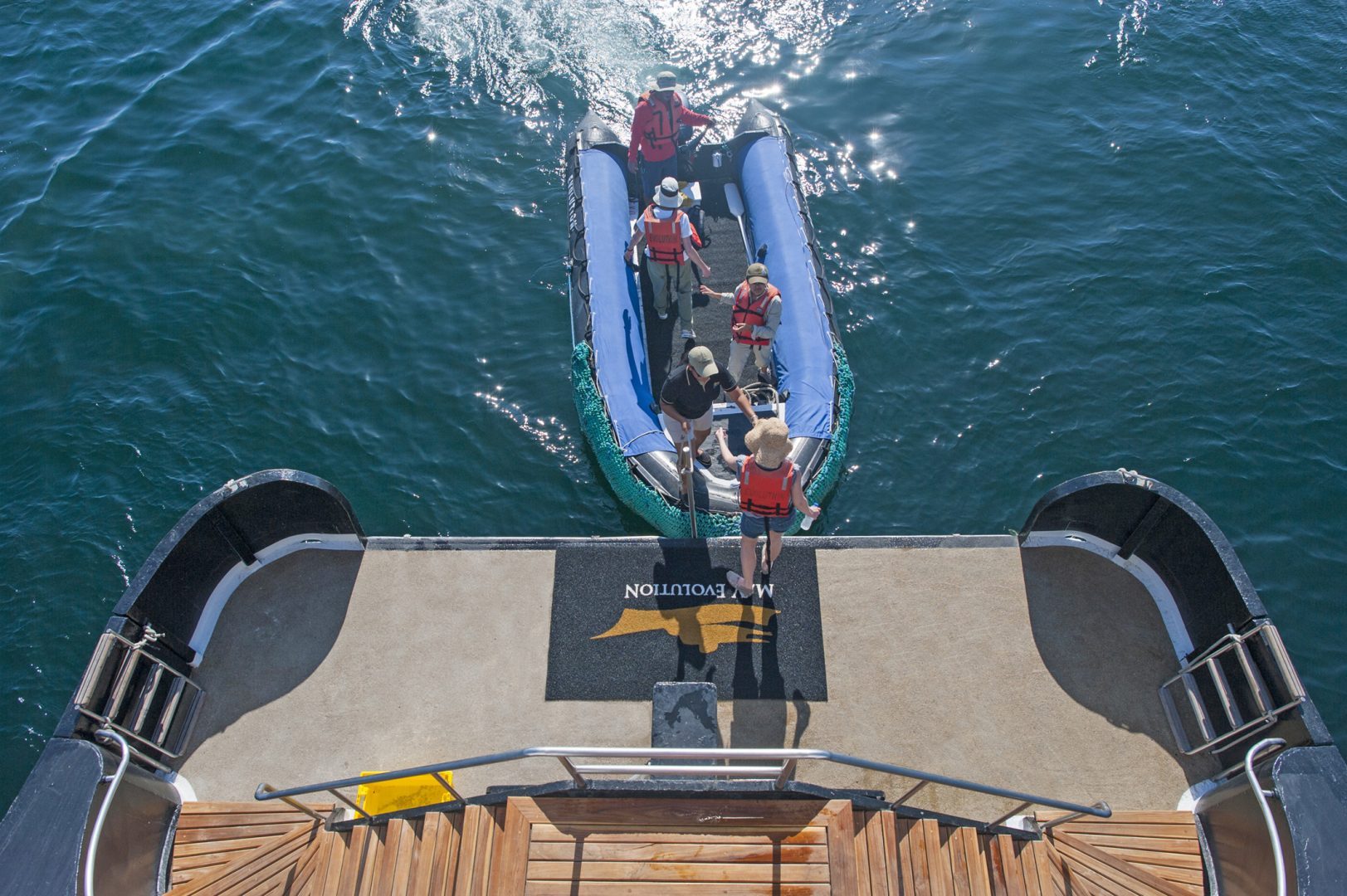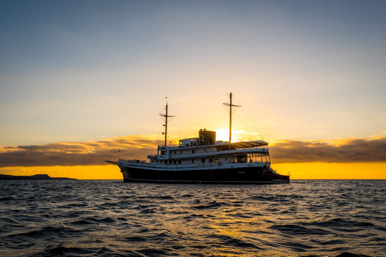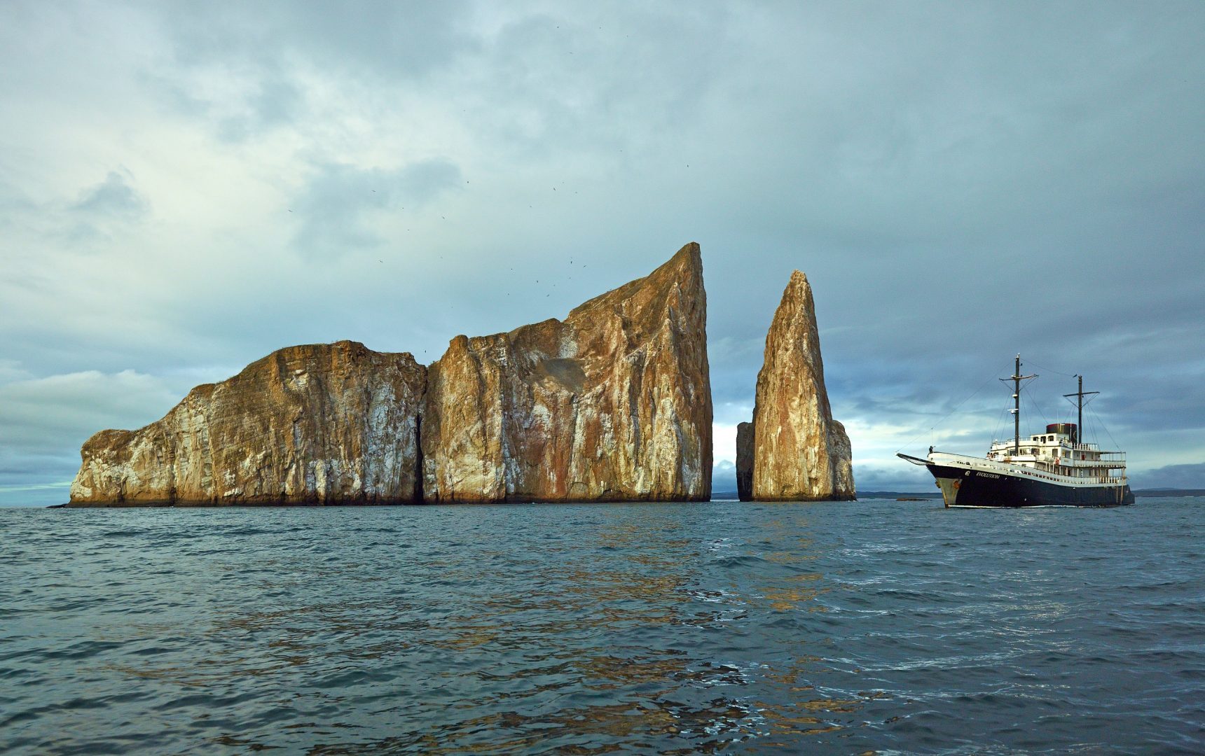 The Evolution yacht is a 32-passenger luxury vessel, 192 feet long. It has the atmosphere of one of the smaller yachts in the islands, while providing some additional space. The decks and social areas are spacious and well-appointed. Guides, food, and service are of top quality. An excellent way to see the Galapagos, combining the best of small yacht cruising and comfort.