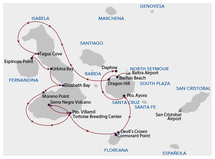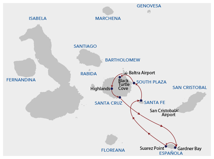 Included: All meals, all excursions, transfers in the islands, bilingual national park guide