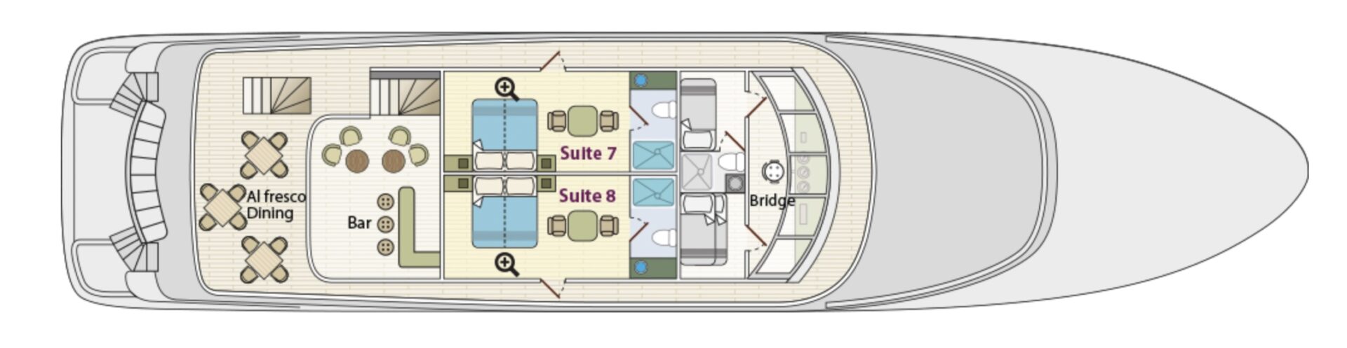 Max number of passengers: 16, in 6 cabins and 2 suites