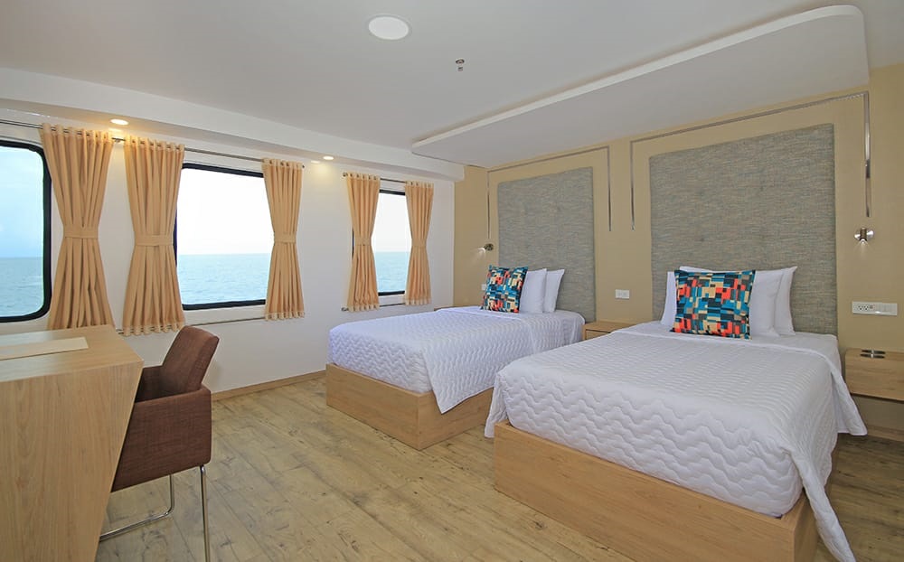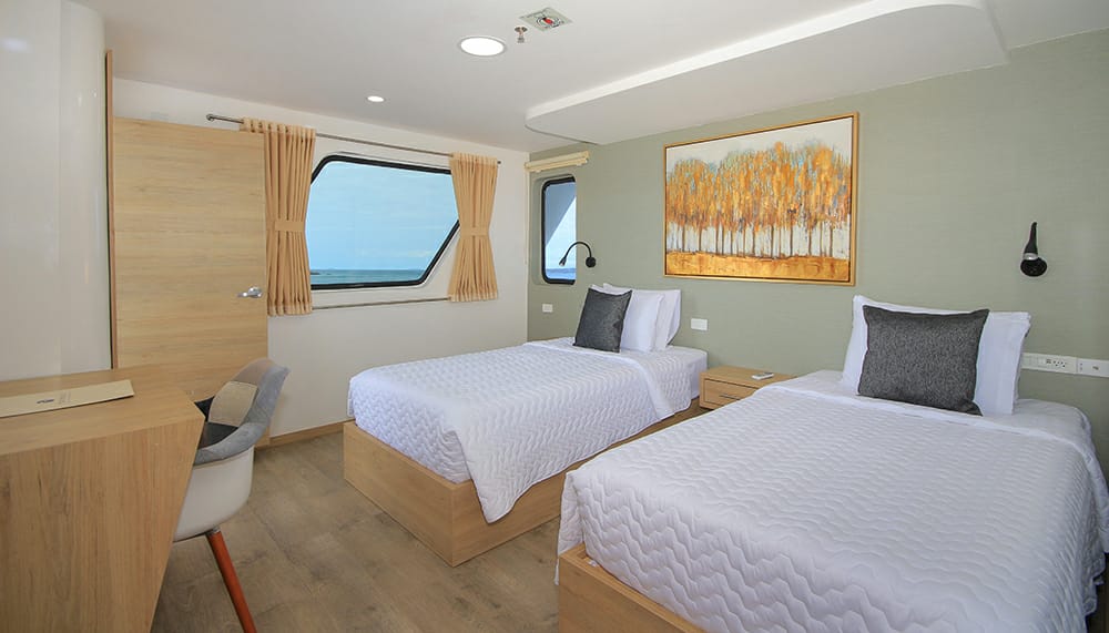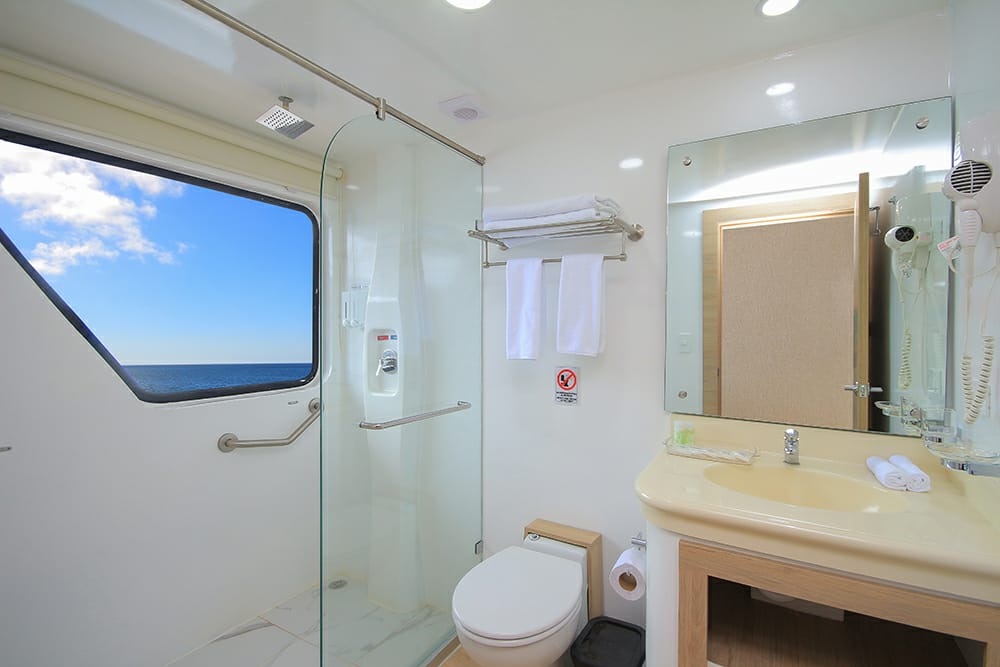 All cabins have private bathrooms, individual climate controls, and ample storage space for clothing and luggage.