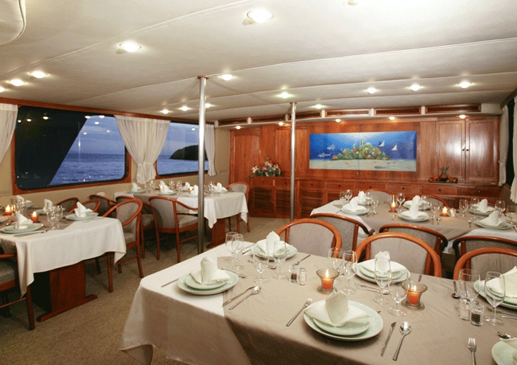 Construction: completed in 2005 Type: Luxury yacht Length: 141 ft. / 43 mts. Beam: 24 ft. / 7.3 mts. Engines: 2 Detroit – MTU Series 60, 4-cycle with Vosper Active Stabilizers Accommodations: 7 double staterooms, 1 single stateroom, and 1 Owner’s suite Crew: Captain, Bilingual Naturalist Guide, plus 9 crew members
