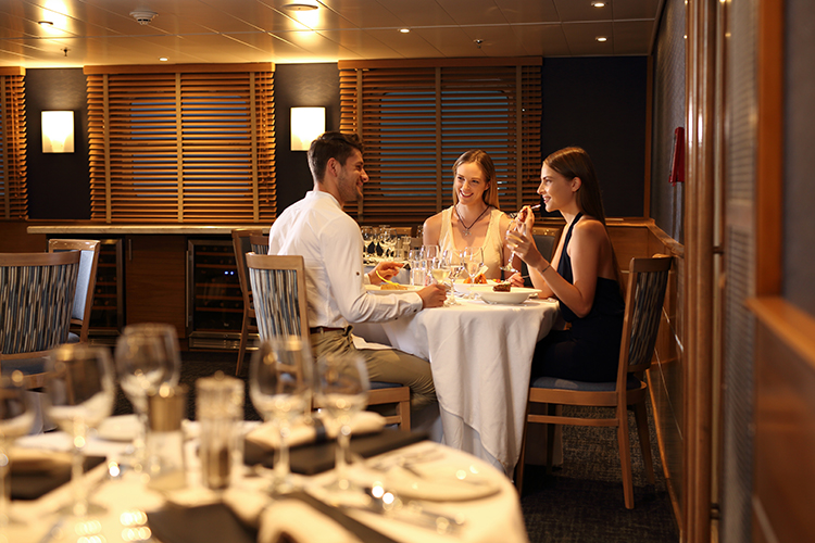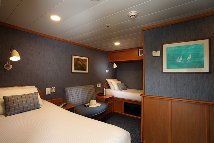 All cabins have private bathrooms, individual climate controls and ample storage space for clothing and luggage.