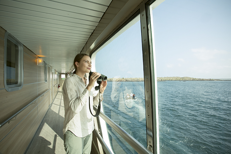 Construction: refurbished in 2000 Type: Deluxe Motor Yacht Length: 166 ft. / 54 mts. Beam: 38 ft. / 12 mts. Engines: 2 x GM Detroit Diesel 900 BHP Speed: 10 knots Accommodations: 1 Master Cabin, 18 Classic Cabins, and 1 Standard Cabin, all with private facilities Crew: Captain, 3 Bilingual Naturalist Guides, Medical Officer, plus 23 crew members