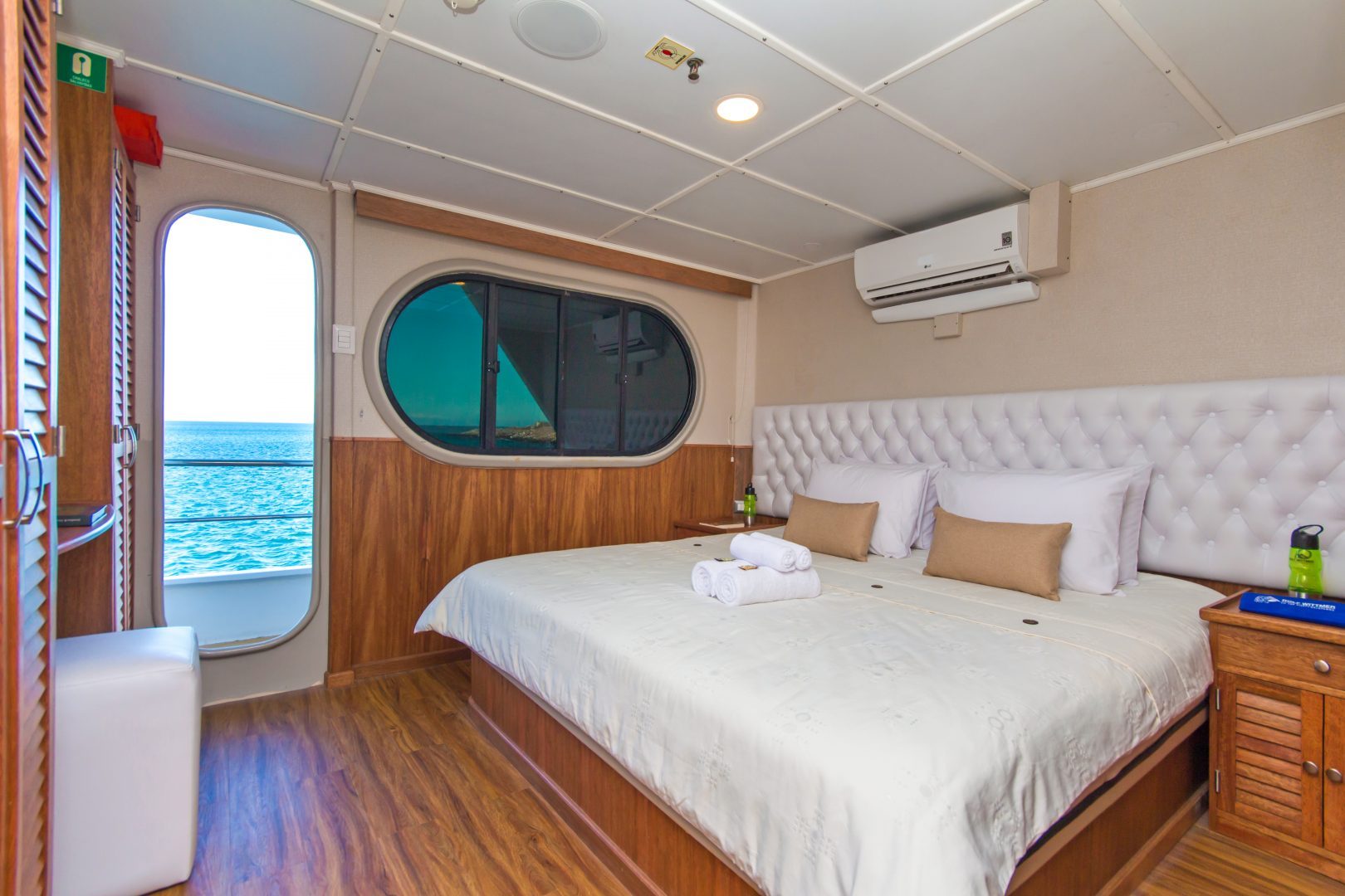 There are 6 Main Deck cabins. Two cabins are with one full-size bed (cabins 1 & 2) and the other four are with two twin beds (cabins 3 to 6).