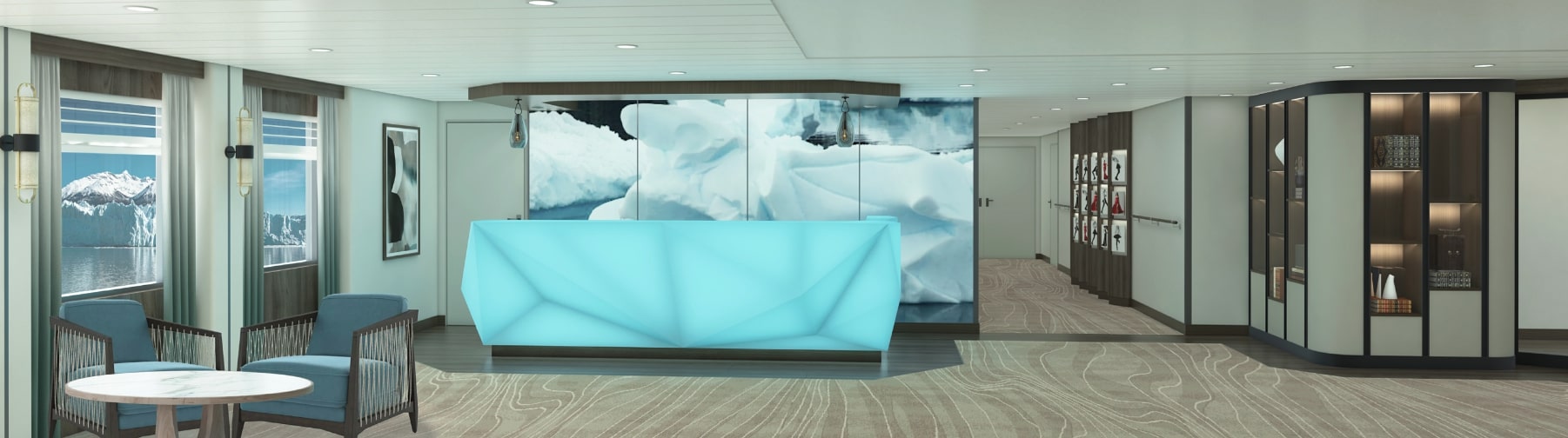 Capacity: 76 guests for air-cruises & 96 for sea voyages Crew: 67 expedition staff & crew members Ice Class: PC6 Length: 94m Draft: 4.3m Breadth: 17.2m Cruising Speed: 14 knots in open water Propulsion: Hybrid-Electric Diesel engines, 2 x 1,800 kW