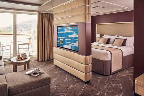 • Category 7 (Bridge Deck—Large Balcony Suite with large balcony, sofa bed, bathtub, walk-in closet, 430 square ft. #700-707, 712, 714-717)