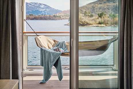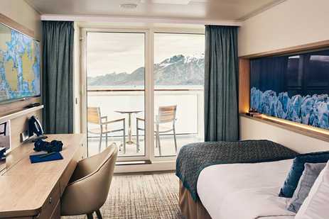 • Category A Solo (Main Deck—Standard Balcony cabin with balcony and sofa, 140 square ft. #504-510, 513)