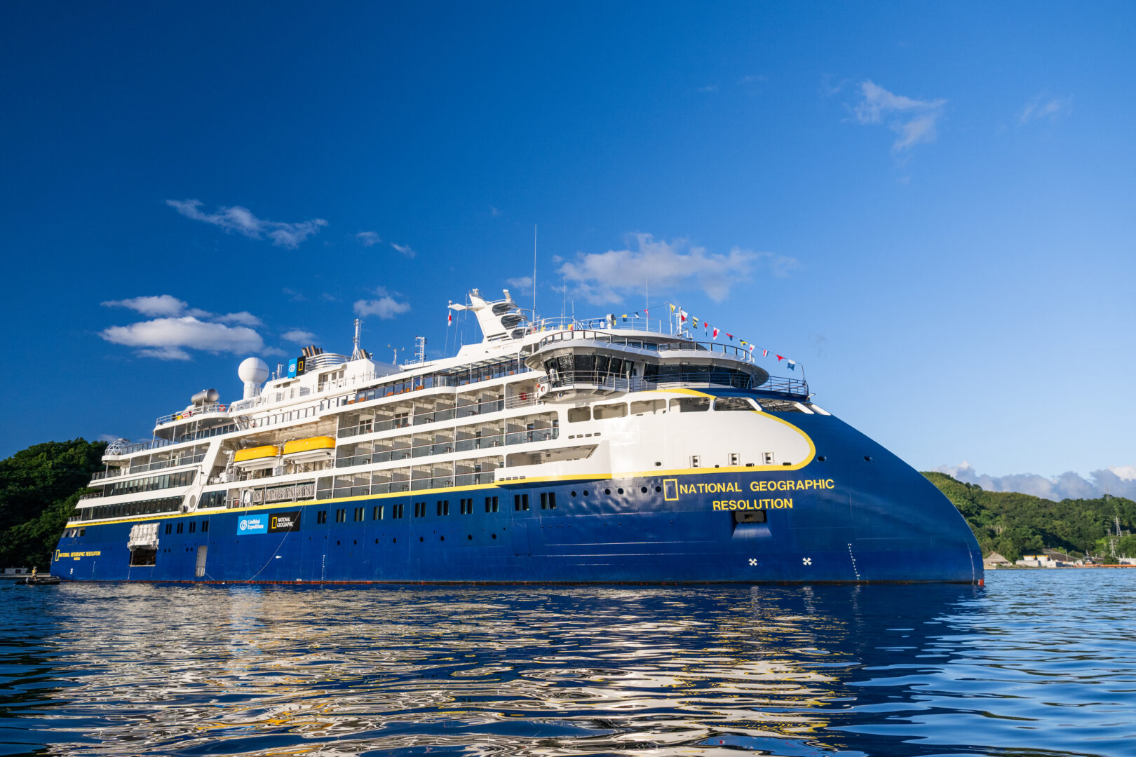 Built in 2021, National Geographic Resolution is a fully-stabilized vessel of the highest ice class (PC5 Category A), enabling adventurous travelers to go where few have gone before. The Resolution's striking exterior features the patented X-Bow, a game-changing design that guarantees the smoothest, quietest, and most comfortable ride in polar conditions. Its interior is inspired by chic Scandinavian design, and features state-of-the-art facilities such as a lounge with bar, a gym, a library, a yoga studio, infinity-style outdoor hot tubs, saunas with ocean views, two restaurants featuring local, sustainable cuisine, and more.