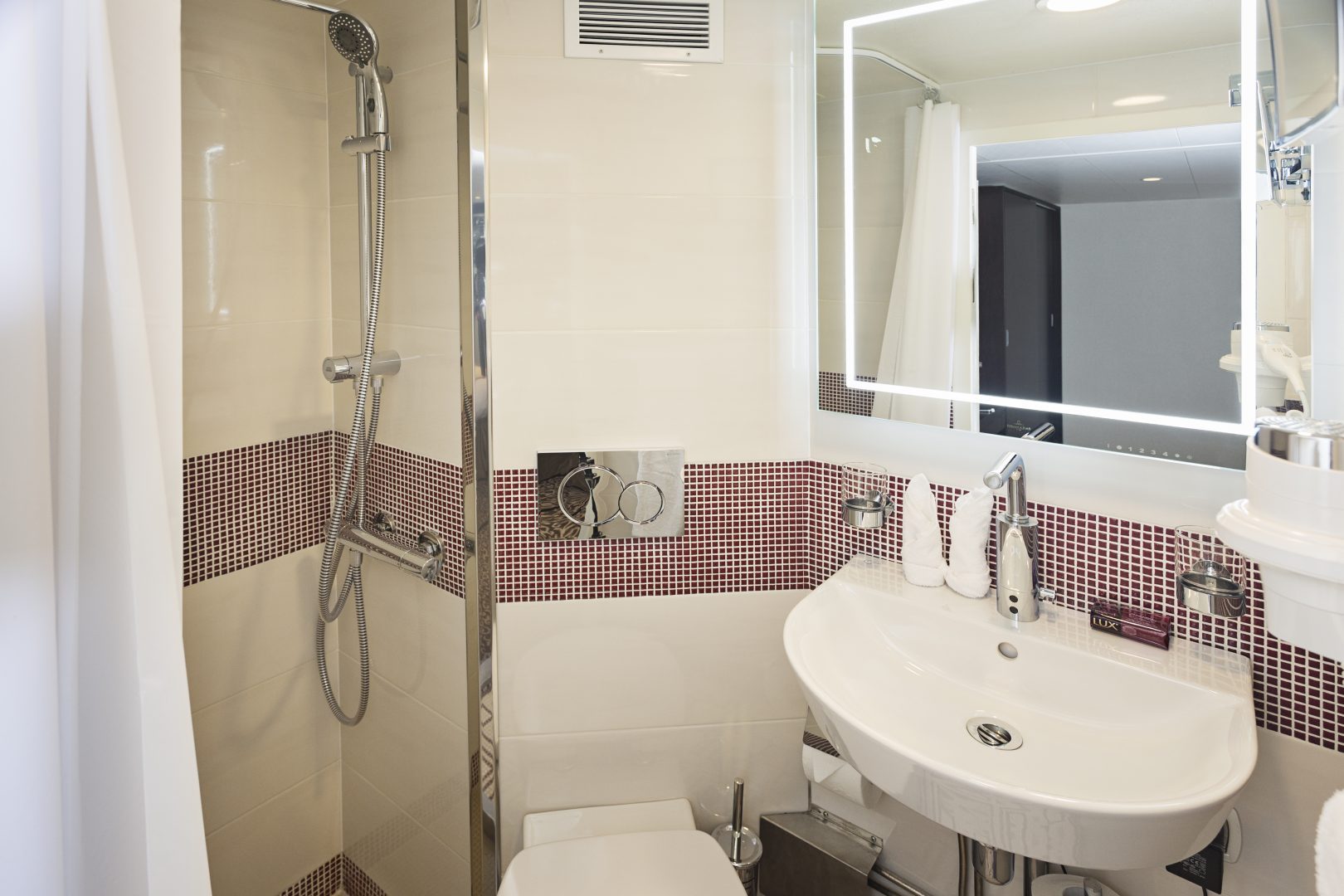 Category C (12-13 m2) – This Standard Cabin has two single beds, private bathroom, and a window. Located on Marco Polo Deck (Deck 5).