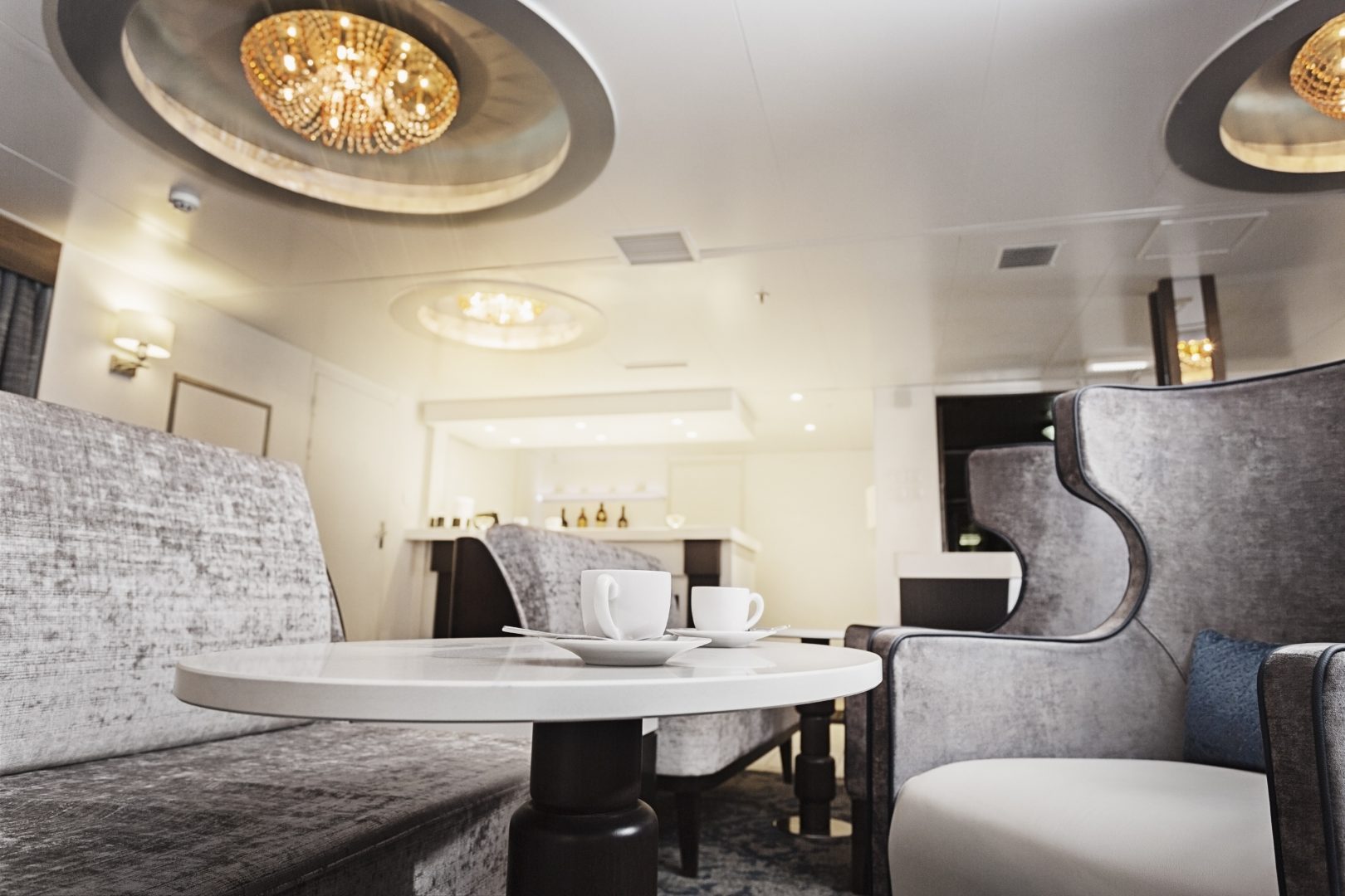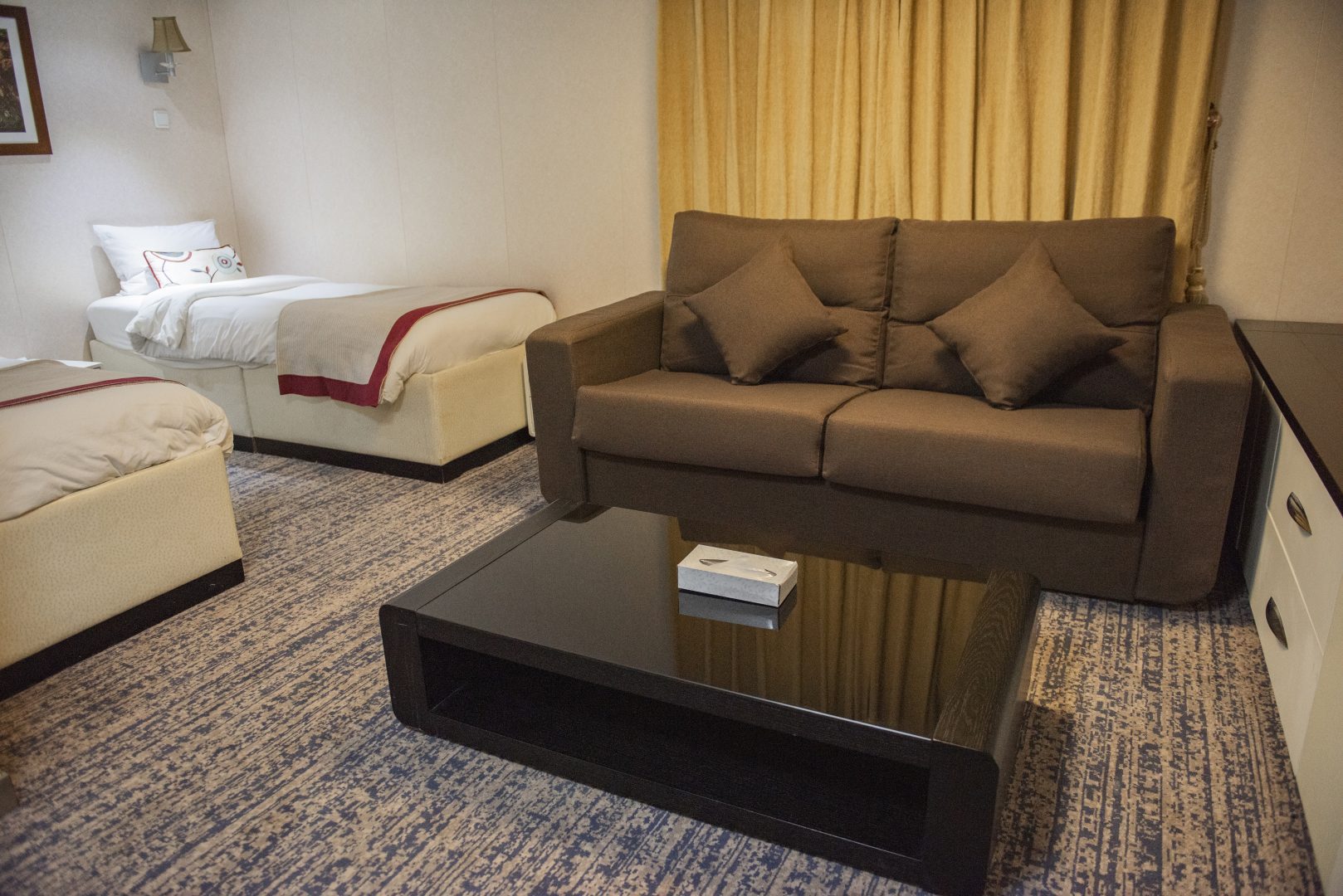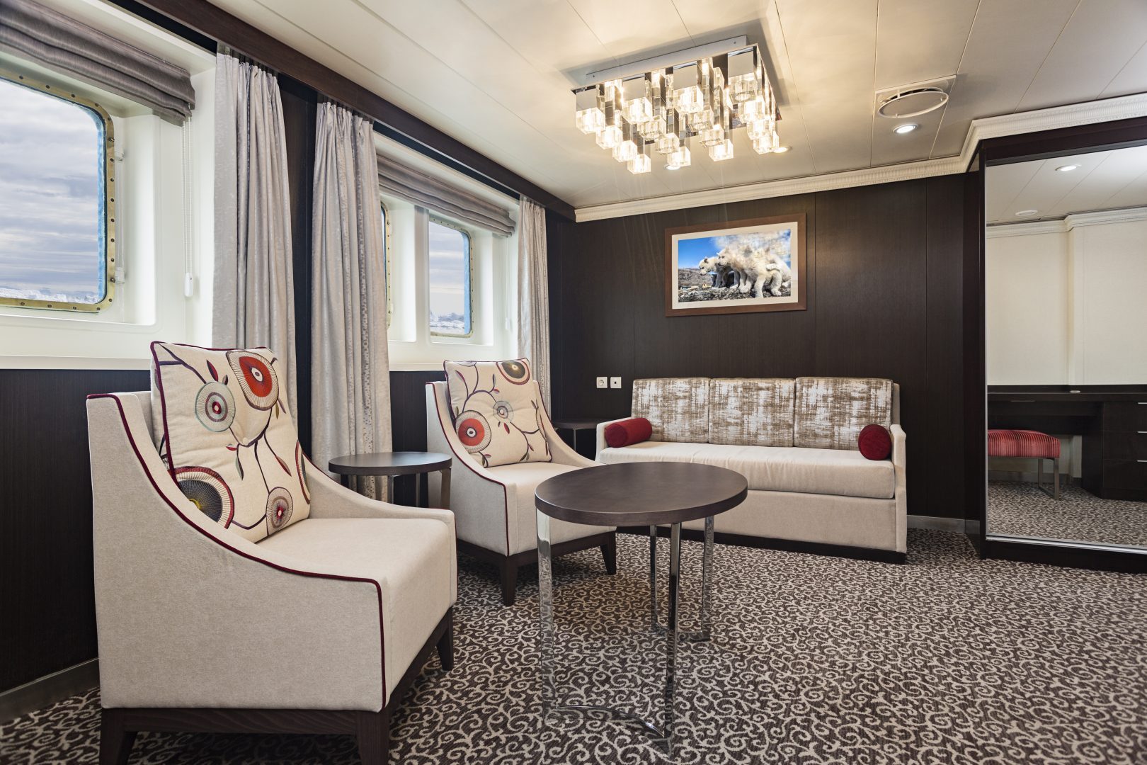 Premium suite (35 m2) – These 2-room suites are designed with a large double bed or two twin beds, an elegant living room, large private bathroom and windows. Located on the Marco Polo Deck (Deck 5).