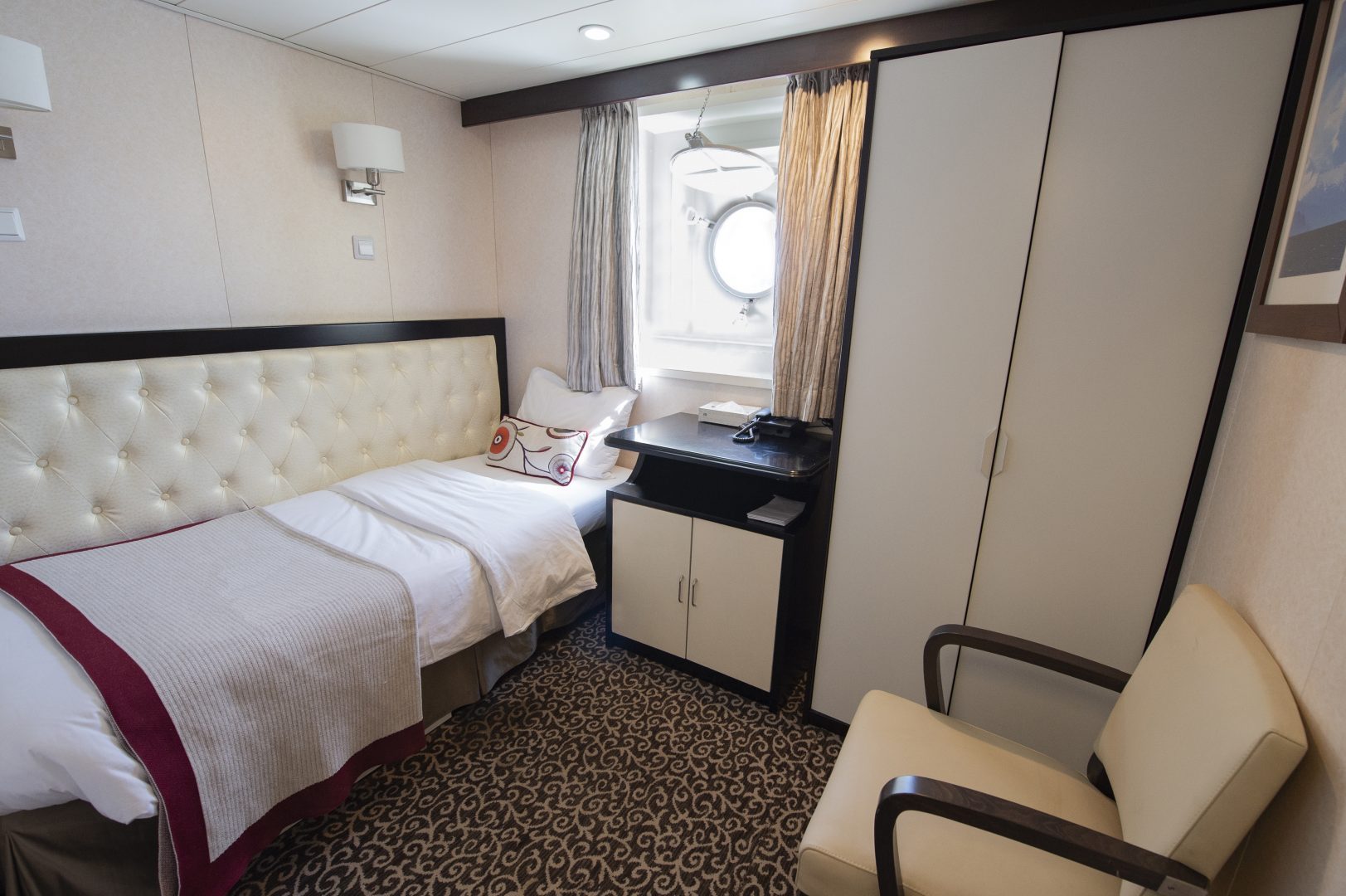 Category G (9-10 m2) – Cabins feature a single bed, private bathroom, and a porthole. Located on Columbus Deck (Deck 4).