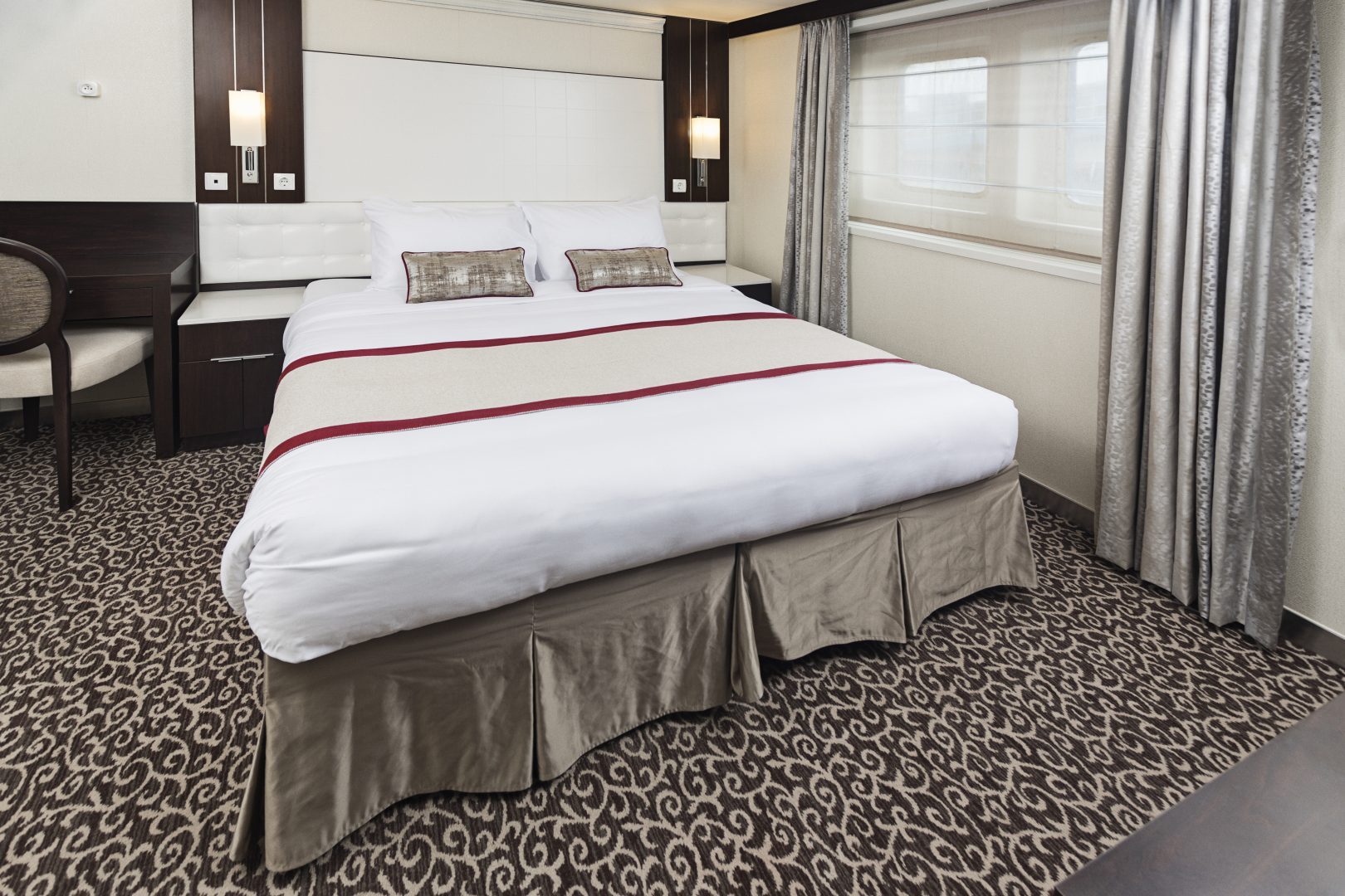 Category A (19-24 m2) – Featuring a double bed or two single beds, a relaxing sitting area, private bathroom and windows. Located on the Marco Polo Deck.