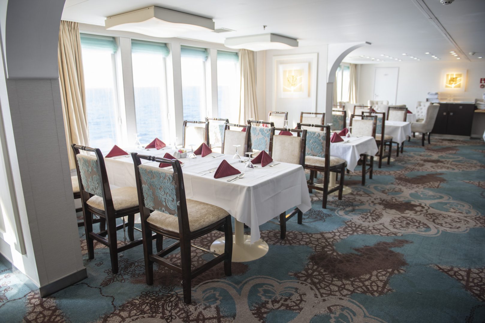 Staff & Crew: 140 Passengers: 200 Length: 459 feet (140 meters) Width: 69 feet (21 meters) Draft: 19 feet (5.8 meters) Engines: 4 x 3,600 kW Ice class: 1B Cruising speed: 12 knots Max speed: 15 knots Zodiacs: 20