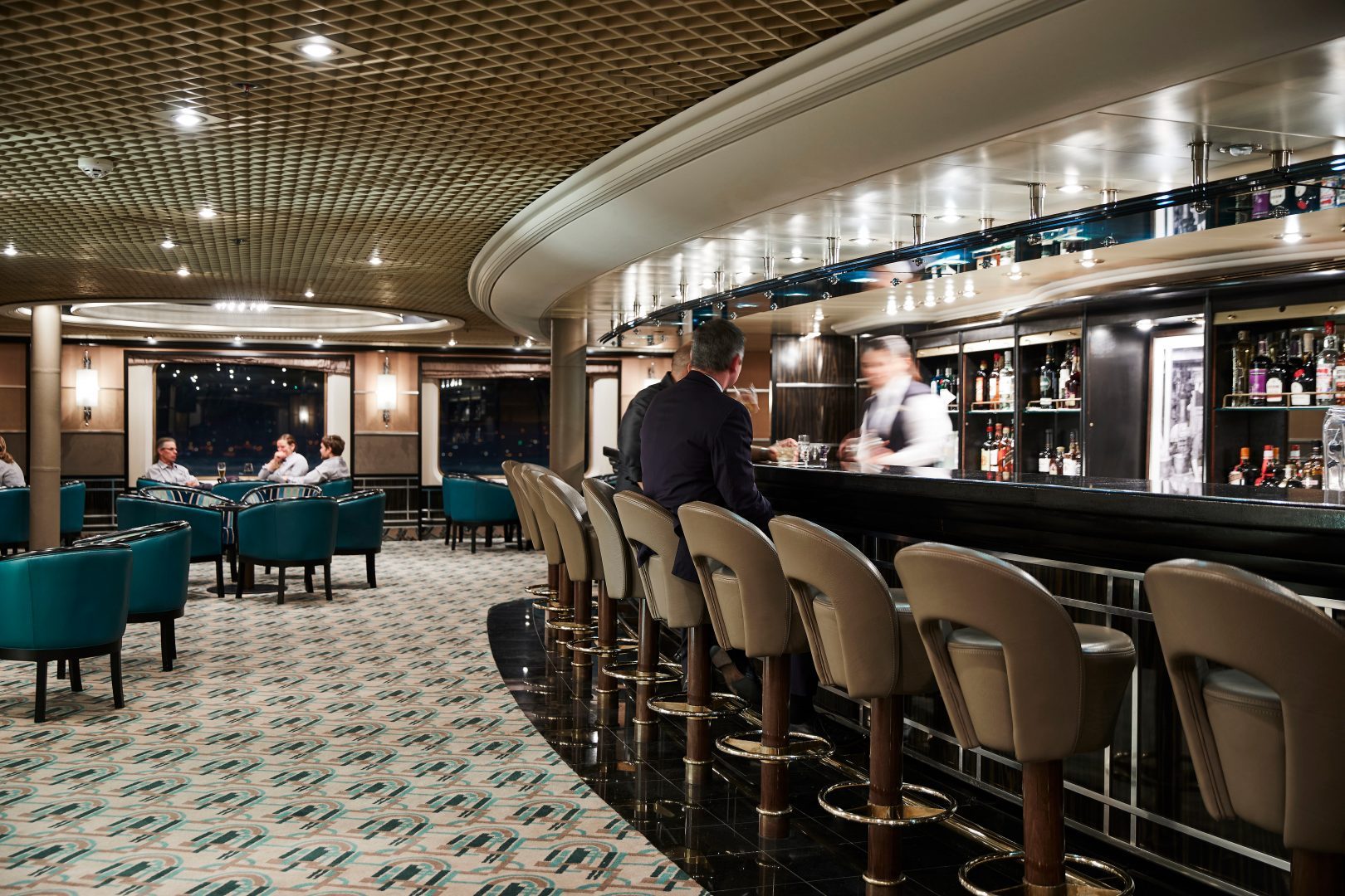 Royal Suite – Stately, commanding, and majestic, this suite is perfect for relaxing after a day of exploring. With lectures being streamed live to your room, this is the pinnacle of good living at sea. Available as a one-bedroom configuration (736 sq. ft. for one bedroom) or as a two-bedroom by adjoining with a Veranda Suite (1,031 sq. ft. for a 2 bedroom). Both have a veranda.