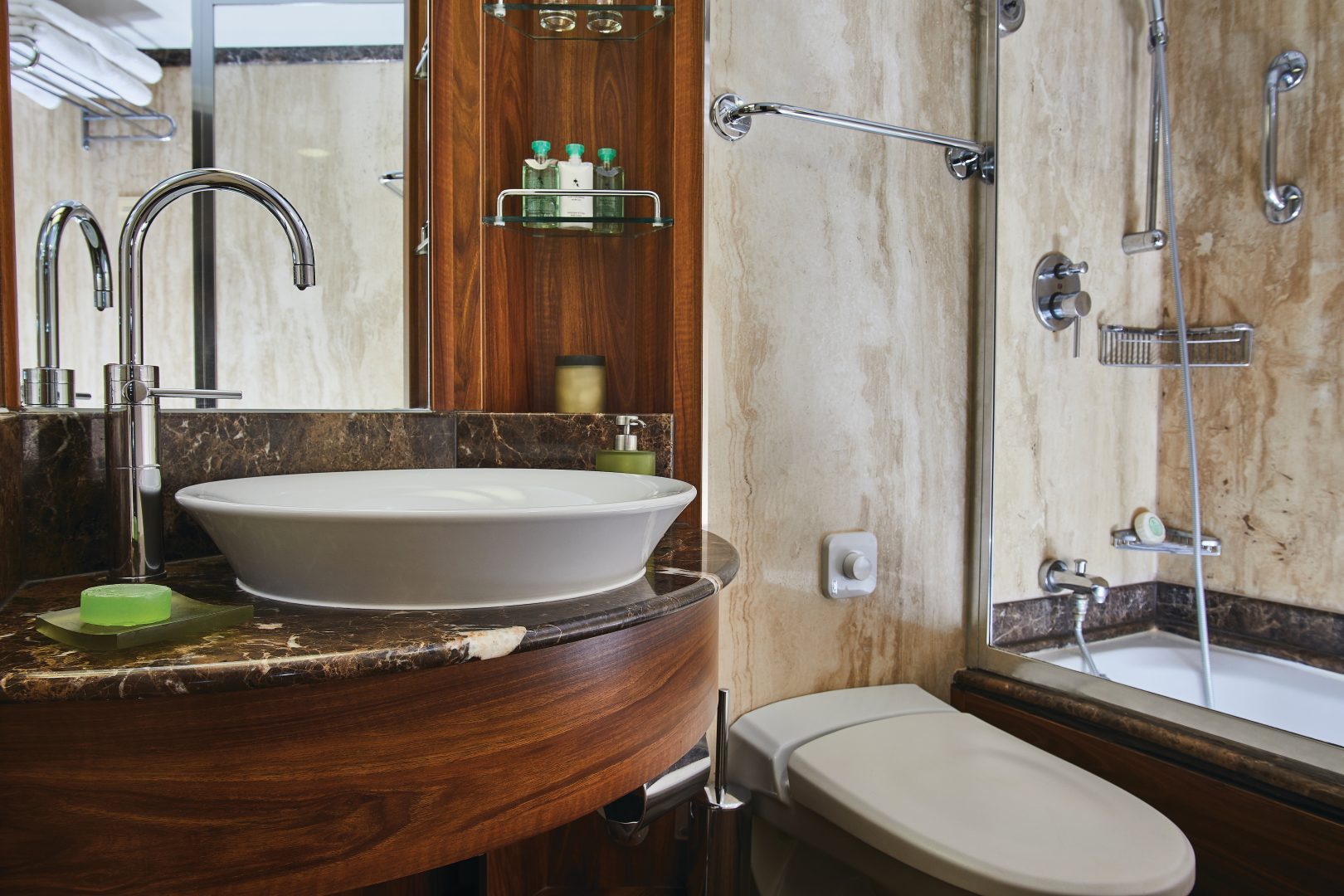 Owner’s Suite – The name says it all: a stylish apartment, prestigious and classic, designed for those who seek the highest level of space, comfort, and service while on board. The Owner’s Suite is available in a one-bedroom configuration (587 sq. ft. for one bedroom) or as two bedrooms by adjoining with a Vista Suite so you can enjoy your luxury cruise in style (827 sq. ft. for 2 bedrooms). Both have a veranda.