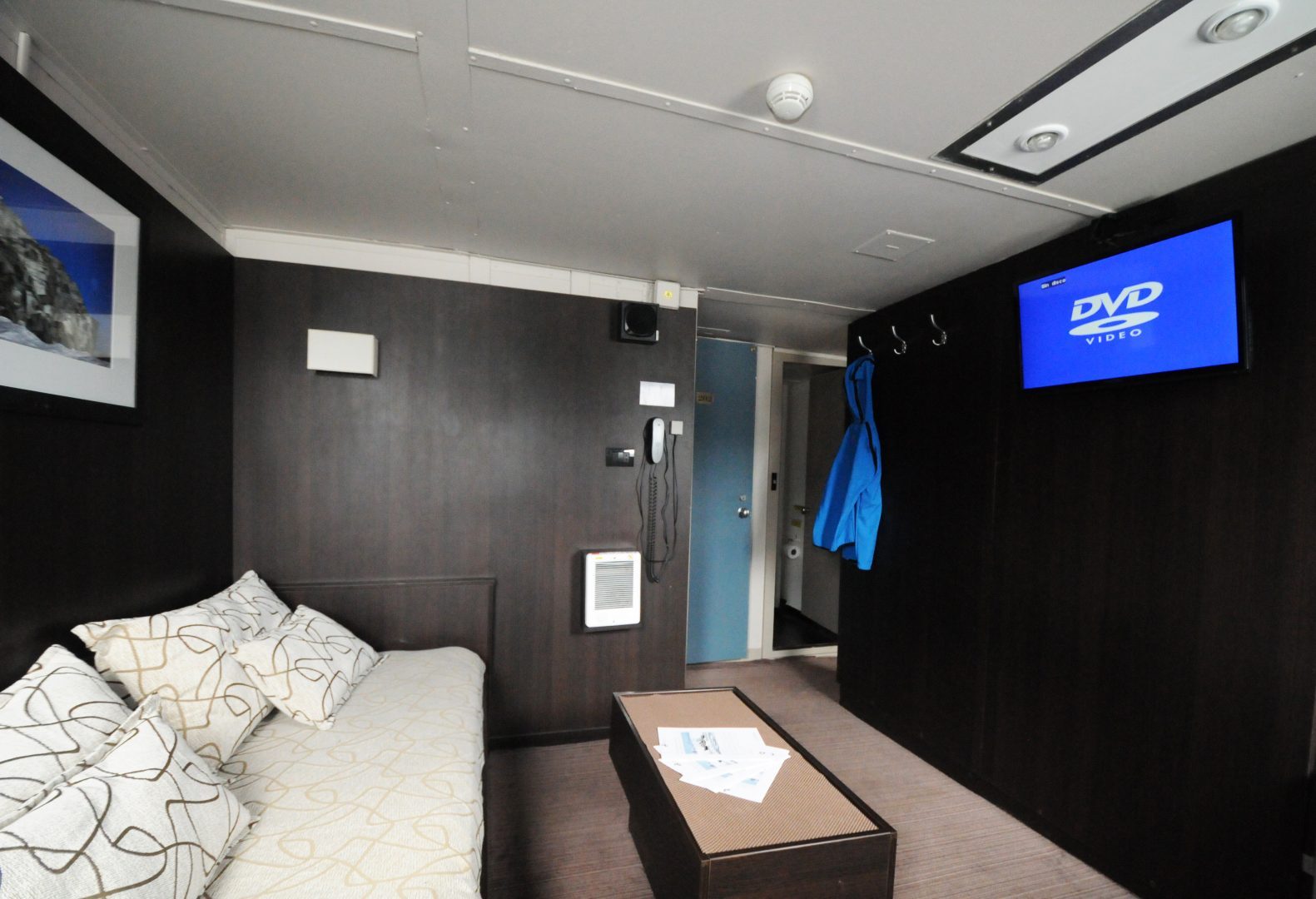 Suites: 4 Outside cabins with windows on the upper deck G, private facilities, two lower berths, lounge, TV, DVD player and fridge. Suite 201 features two double beds, Suite 202 one double bed and a sofa bed. Suites 204 and 207 feature three lower single beds.