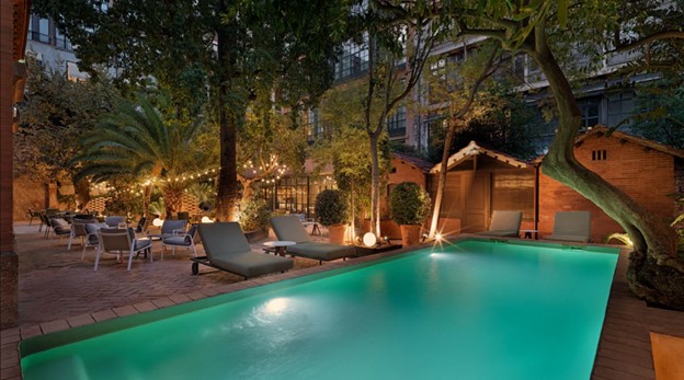 Located on the same block as the La Pedrera building, the H10 Casa Mimosa is an ideal place to stay for your Barcelona exploration. Spacious rooms with modern décor complement the original elements of this 19th century Modernist building. There is a beautiful courtyard garden off the lobby bar full of Mediterranean greenery, such as a century-old palm tree, an impressive lime tree, and mimosas, the hotel's namesake. The hotel also offers a rooftop terrace with a plunge pool and sweeping views of the city.