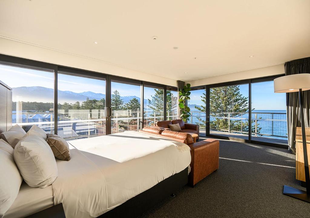 Sudima Kaikōura is a modern waterfront hotel offering sweeping views of the Pacific Ocean and Kaikōura’s dramatic mountain backdrop. Opened in 2022, the property features bright, spacious rooms with contemporary design, comfortable furnishings, and eco-conscious touches like reusable water bottles and biodegradable amenities. Many rooms offer ocean or mountain views. Facilities include a heated outdoor pool, restaurant and bar showcasing local seafood and produce, a small gym, and convenient off-street parking. Located just a short walk from Kaikōura’s town center and marine tours, the hotel provides a fresh and relaxed base for exploring the region’s renowned whale watching and coastal scenery.