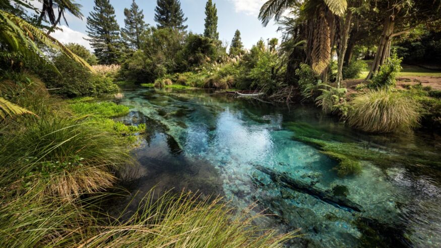 Visit Rotorua’s geothermal valleys, an area known for its technicolor hot springs, healing mud baths, geysers, and Māori culture and traditions.