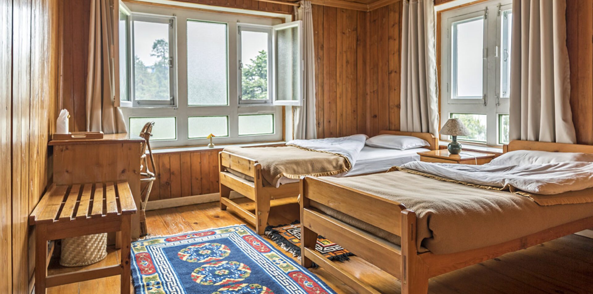 Panorama Lodge is a quaint family-owned lodge perched on top of Namche Bazaar, and was established in 1989. The lodge boasts a cozy central fireplace, WiFi, hot showers, and hearty Nepali and Western meals served at the onsite restaurant. The rooms are basic but comfortable, outfitted with large windows and toasty heated blankets.