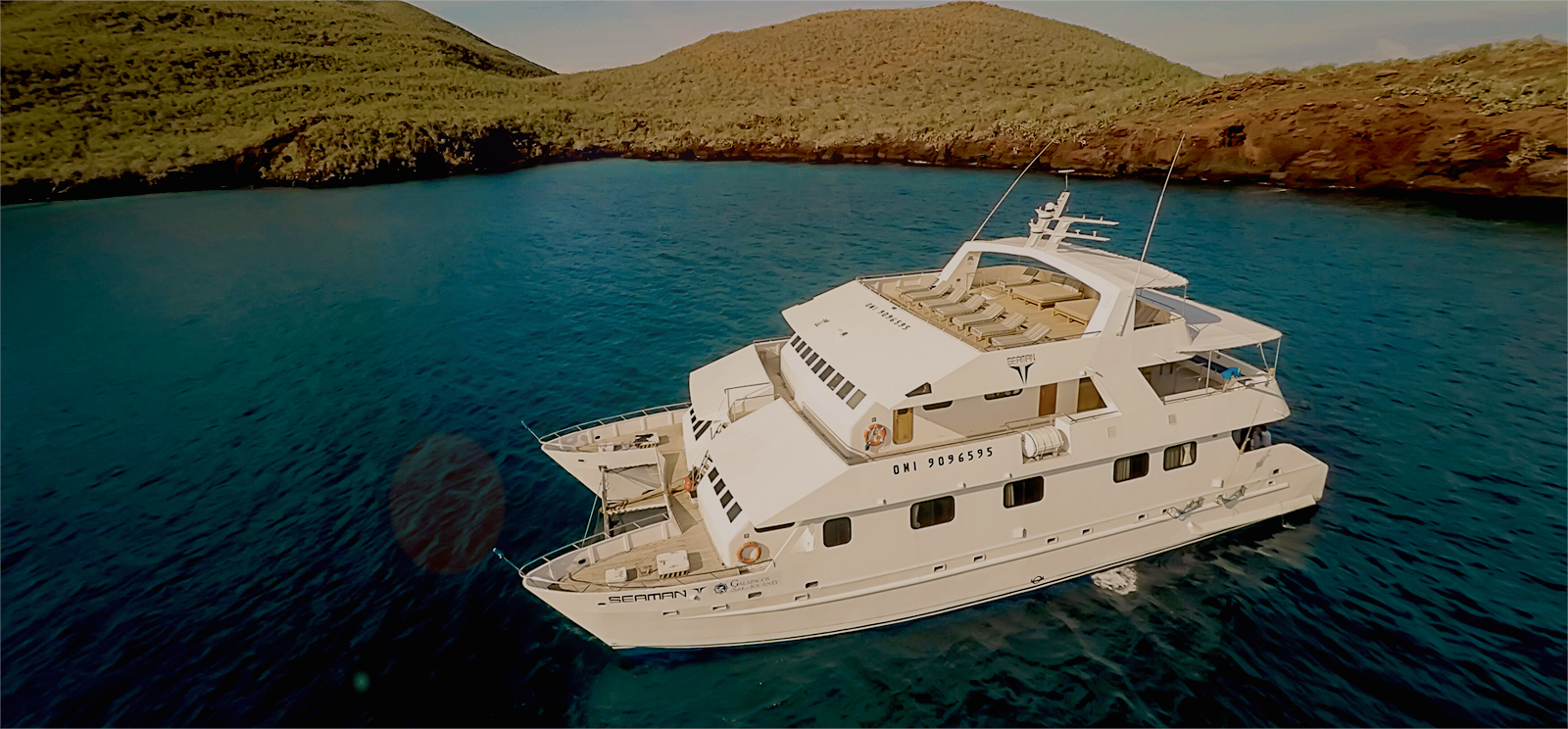 The Treasure of the Galapagos is a 16 passenger first class catamaran. Its cabins are ample and bright and include a seaside door and balcony. Amenities include an outdoor whirlpool for up to 6 people, deck chairs, bbq, TV/DVD, a small library, and board games.