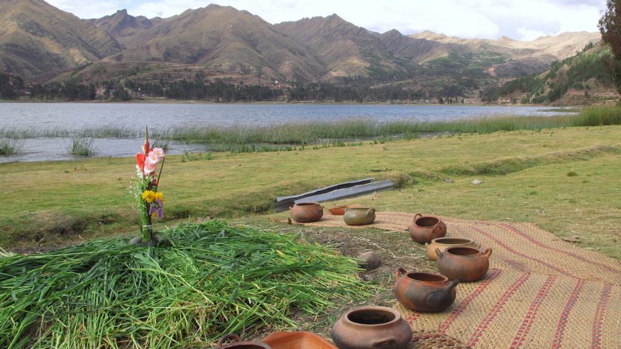 Take the morning train back to Ollantaytambo, in the Sacred Valley. You will be met and driven to beautiful Piuray Lake, where preparations will be underway for a Pachamanca. This is a traditional way of cooking in the Andes, where an oven of hot stones is created in the ground and layers of vegetables, potatoes, meat, fruit, and corn are carefully wrapped and placed in the oven.