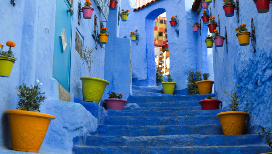 Explore the iconic Blue City with your private guide. Chefchaouen is made up of narrow steps and cobblestone streets, its lanes flanked by historic leather and pottery shops and stores overflowing with spices and herbs. The ancient medina is a feast for the senses and is an idyllic place to wander around for an afternoon.