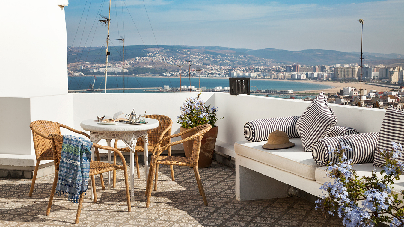 Ten airy, contemporary rooms face the traditional central courtyard of this beautiful riad. Situated at the top of Tangier’s whitewashed medina, this restored boutique riad offers rooftop views of the sea and surrounding area, an award-winning French chef, and an art collection that makes each room come alive.