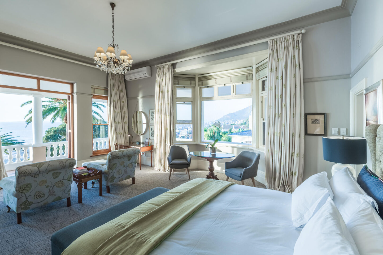 Ellerman House is located in Bantry Bay and offers spectacular Atlantic Ocean views against the dramatic backdrop of Lion’s Head Mountain. Clifton’s sheltered beaches are within walking distance, while local attractions such as the Table Mountain Aerial Cableway, Camps Bay, and V&A Waterfront are 10 minutes by car. Originally a private residence, the historic Cape Edwardian-style mansion features shaded verandas and terraced indigenous gardens overlooking the ocean. There are 13 individually decorated rooms and suites complemented by two ultra-modern villas.