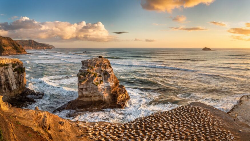 Explore the dramatic contrasts of Auckland’s east and west coasts on a full day private coastal tour. Begin with a visit to the rugged black sands of Muriwai Beach, home to a striking gannet colony and sweeping cliff-top views. Take time to walk along the shoreline, observe the seabirds nesting nearby, and soak in the wild coastal beauty.