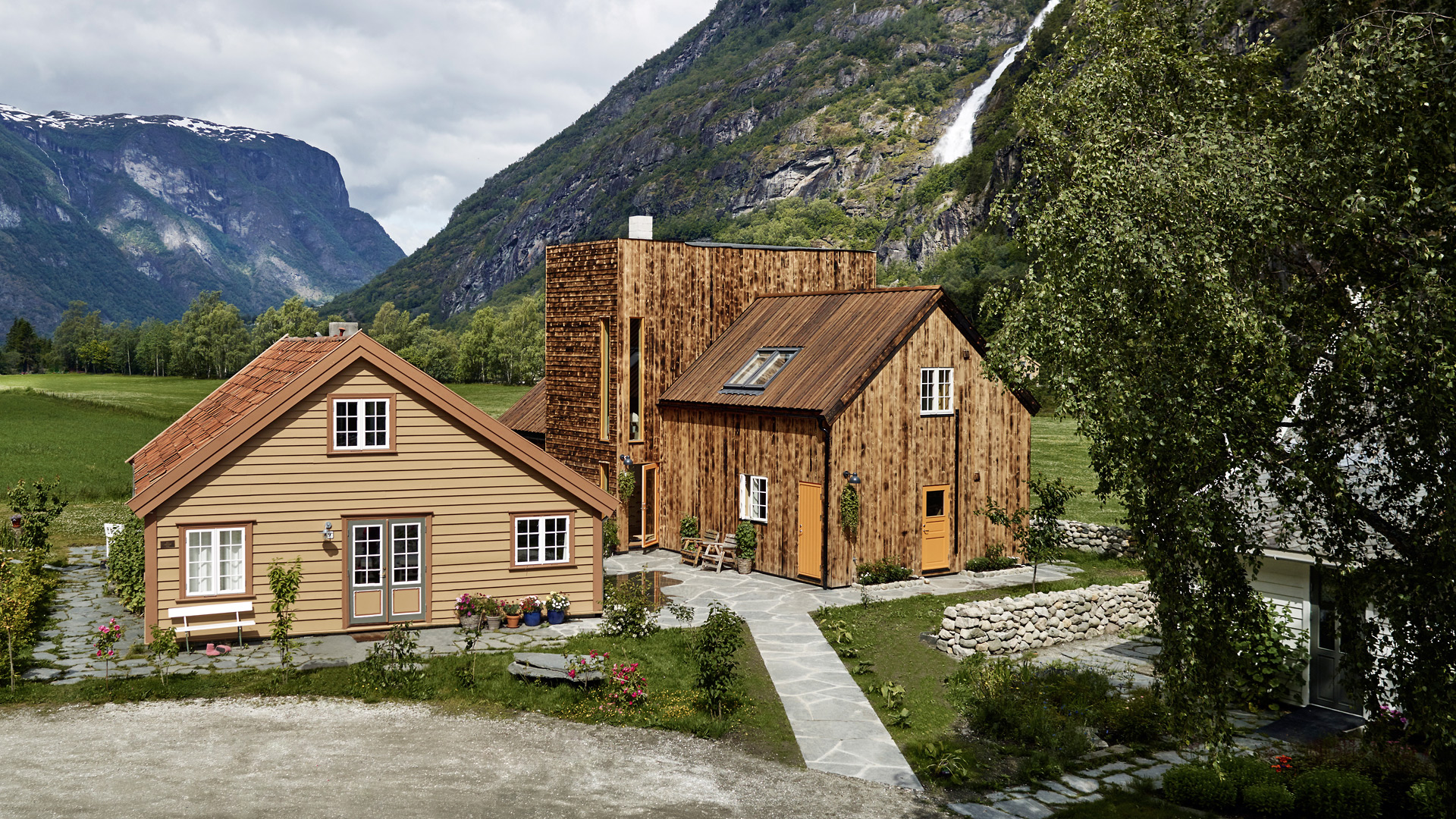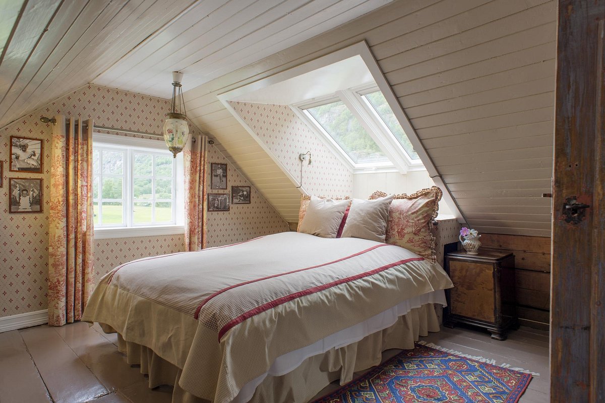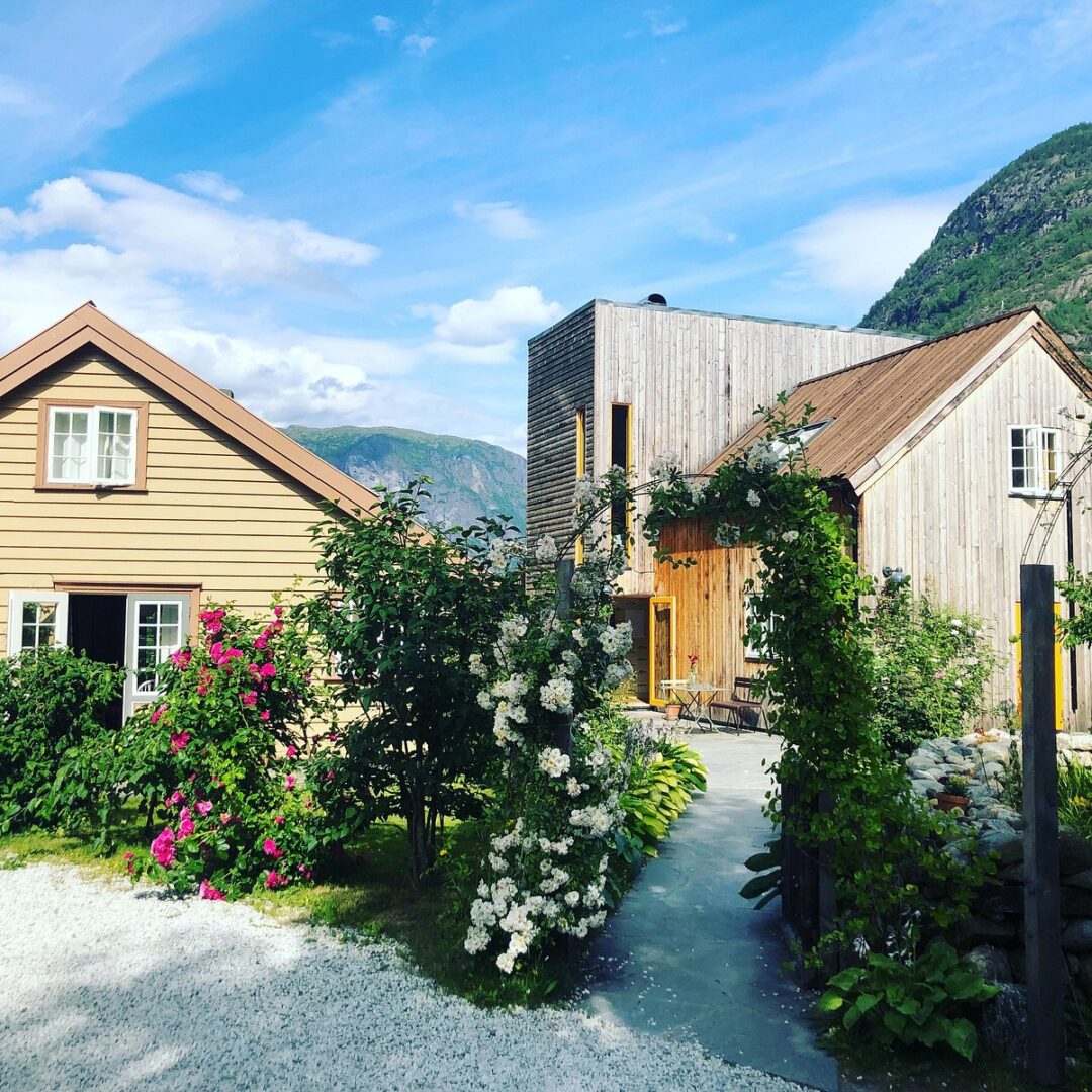 29/2 Aurland is a historic hotel on a restored farm with roots dating back to the 18th century. It features eight unique rooms across three buildings: "Fiskerhuset" (the Fisherman's Cabin), "Geitefjøsen" (the Goat Barn), and "Bestemorhuset" (the Grandmother's House). Enjoy dinner in the new "ETE" restaurant and relax in the "Eldhuset" lounge (the Smokehouse). The hotel also offers a spa with a wood-burning sauna and hot tub, and guests can explore the gardens, orchard, and horse pasture. A really unique boutique hotel in the heart of the fjords.