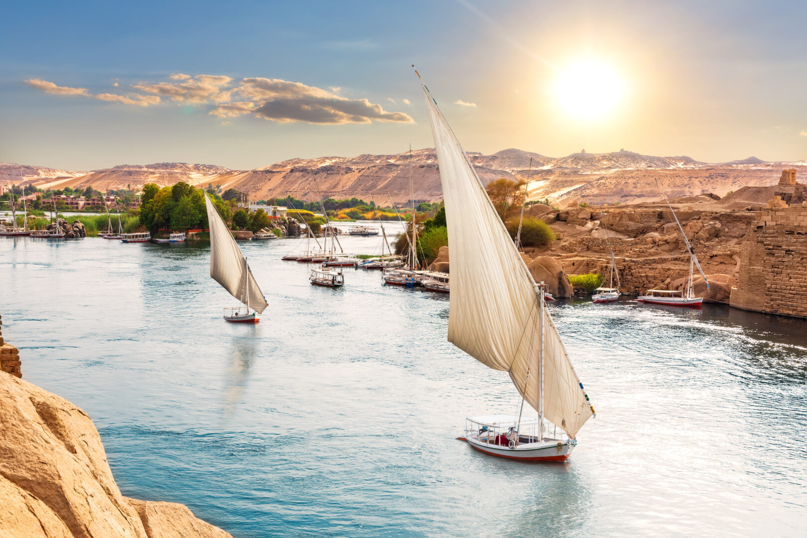 Marvel at the unfinished Obelisk, frozen in time in the bustling ancient city of Aswan. Enjoy local cuisine and tour the Philae Temple, which was moved piece by piece and entirely reconstructed on the island of Algikia during the building of the Aswan High Dam. In the afternoon, relax on a traditional felucca sailing boat and feel the wind in your hair as you tack back and forth in the current of the Nile. Return to your suite on board for a last evening on the river.