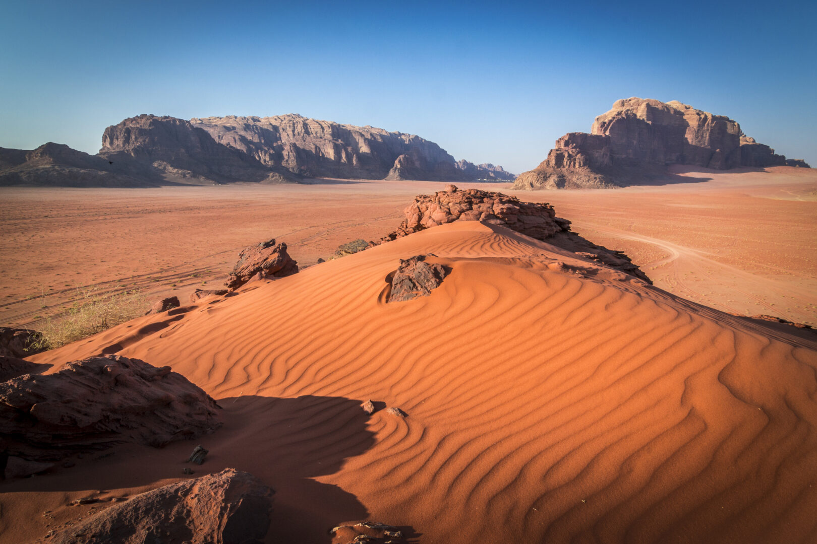 An early start today takes you south to the stunning desert landscape of Wadi Rum. Upon arrival and after settling into your desert camp, you’ll embark on an afternoon jeep tour through the magical mountainous terrain, giving you a sense of this wild and varied landscape.